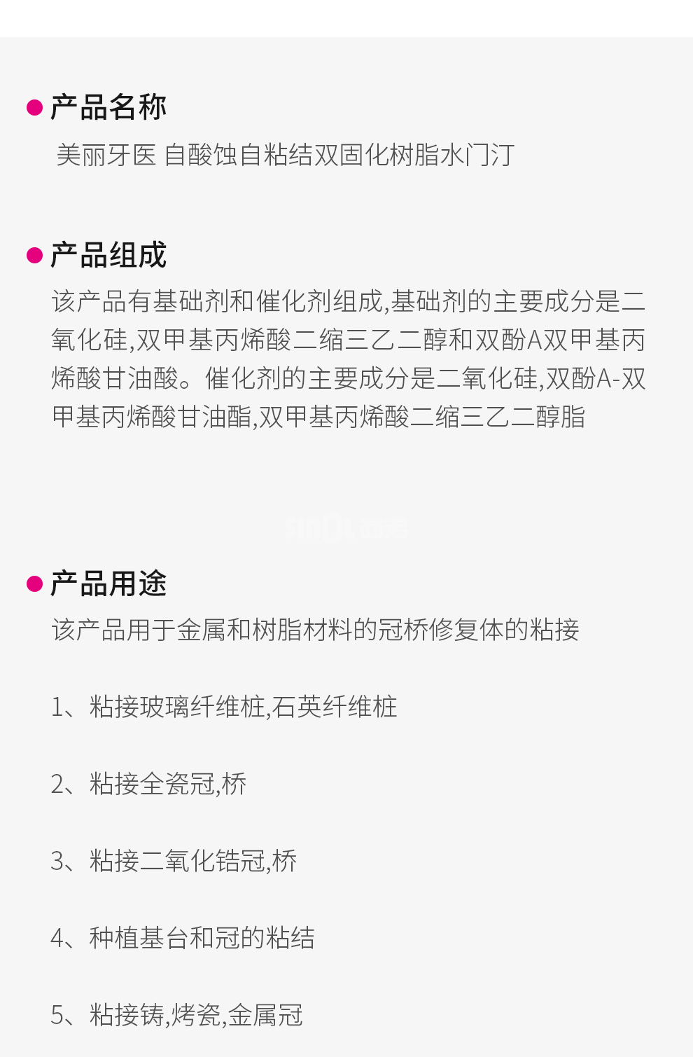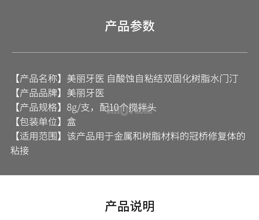 品 名:自酸蚀自粘结双固化树脂水门汀