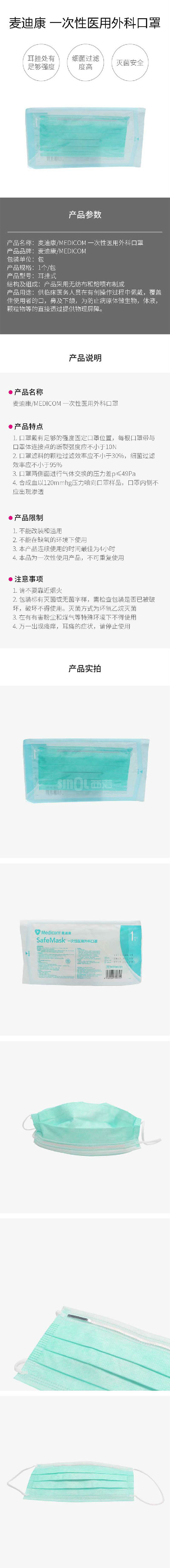 品   名: 麦迪康/MEDICOM 一次性医用外科口罩 耳挂 灭菌1只装