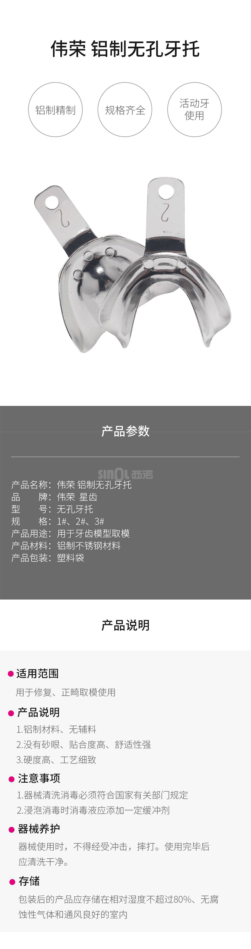 您选择的产品: 上海伟荣/星齿 铝无孔牙托 (上下口) 2# 中